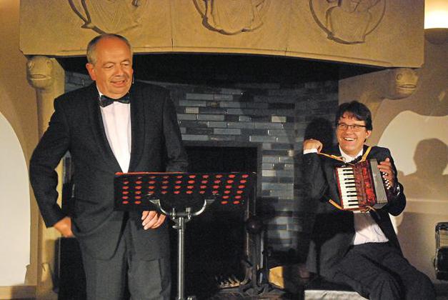 Auch Ringelnatz und Tucholsky durften selbstverständlich nicht fehlen. Bei Eckhard Radau gingen an diesem Abend Spottlieder, Satire-Gedichte und historische Erzählung Hand in Hand. Ein erfahrener Kabarettist, der mit der Materie ganz und gar vertraut wirkte, sich in den „Sound“ der Dreißiger gut einfühlte, ohne ihn direkt kopieren zu wollen. Und Bernd Düring, der Mann am Klavier, tat das Seine. Mal mit einem Mini-Akkordeon, mal mit einer Swing-Nummer von Django Reinhardt.