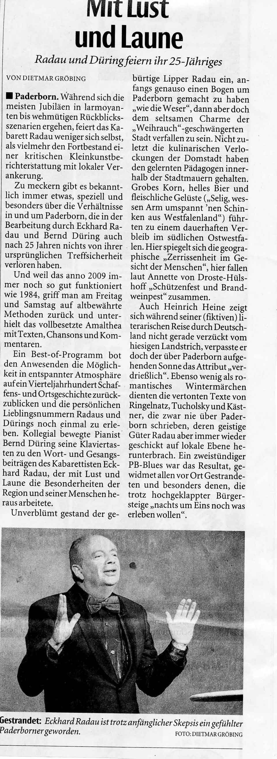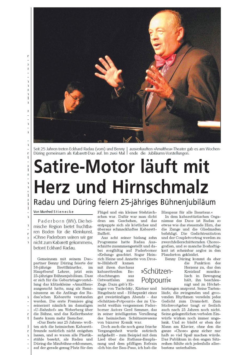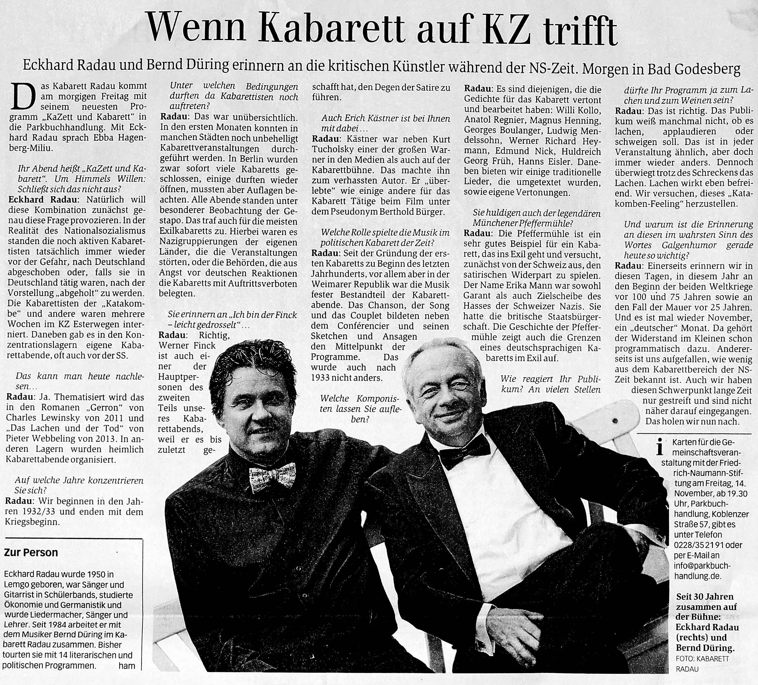Das Publikum wusste an diesem Abend die gehobene Unterhaltung zu schätzen. Es zollte den beiden Akteuren Radau und Düring lang anhaltenden Applaus.“